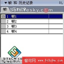 如果我們現在打開“幀”面板的話,就可以看到該面板下已自動為按鈕元件生成了四個幀,如圖8—03。但此時只有第1幀中有按鈕圖像,其它三幀均還沒有任何內容。