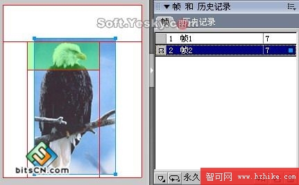 在Fireworks中制作簡單的圖像變換,就是把“幀”面板中第1幀裡的對象與第2幀中的圖像進行交換。