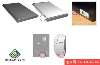 4.同樣,鼠標的側面也使用這種方法,基本完成了造型,但是還缺少點什麼,整個移動硬盤表面上的東西象是貼上去的圖,沒有任何層次感