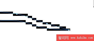 現在把這兩條曲線最左邊連接組合成封閉路徑。也可以用鋼筆工具實現:首先點擊位置靠上曲線的左邊的尾點,然後點擊位置靠下曲線的左邊的尾點。Fireworks會自動把他們連接成封閉路徑。如下
