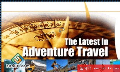在羅盤和"The Latest In Adventure Travel"的周圍畫一個切片