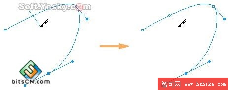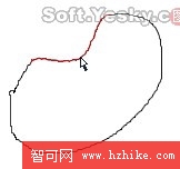 使用“重繪筆刷”沿著彎度重新畫一條弧線,重繪的路徑部分會以紅色高亮顯示,這樣,原來路徑就被新的路徑取代了。如圖2—36。