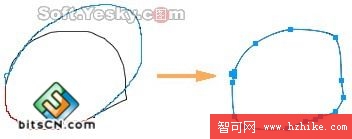 工具:用“細部”工具可以對簡單的封閉路徑進行編輯。但對於圖2—37中這種較復雜、節點較多的封閉路徑,就要使用“重繪筆刷” 來處理。