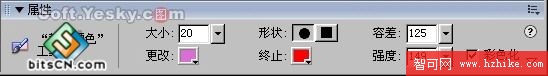 在“替換顏色”的屬性框中還可以對“替換顏色”筆觸的大小、形狀、容差和強度進行設置。而“彩色化”是指用“終止”顏色去替換“更改”顏色。取消選擇“彩色化”以便用“終止”顏色對“更改”顏色進行塗染,並保持一部分“更改”顏色不變。