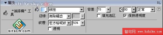 在“油漆桶”的屬性對話框中可以看到,該工具的填充類別有實心填充、網頁抖動、漸變填充和圖案填充四種。 其中各種填充方式又有諸多色彩及樣式可供選擇。