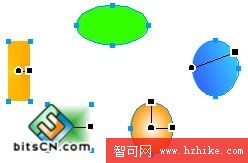 我們先來做一個簡單的五幀動畫例子。在工作區上隨意畫上五個對象,按住Shift鍵選中所有對象,如圖6—01。