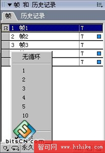 點擊“幀”面板右下角的“添加”   或“刪除”   按鈕,可以添加或刪除被選中的幀。而在“幀”面板左下角的“循環”   按鈕可以設置動畫的播放次數,如圖6—04,當前所選擇的是“永久”循環播放。