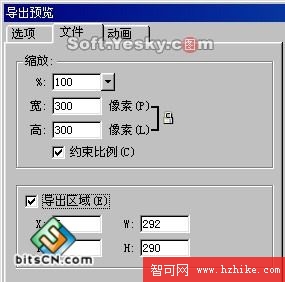 導出區域——選擇該項後可直接在X,Y欄中輸入起始坐標,在W,H欄中輸入寬、高度。此時,在圖像的預覽區中,圖像四周會出現六個控制點,通過拖動這些控制點也可以設定圖像的導出區域。