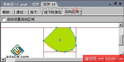 綠色區域內的就是該按鈕有效的鏈接范圍。用“指針”或“部分選定”工具拖動鏈接范圍邊上的控制點,可以對該范圍進行修改或調整。