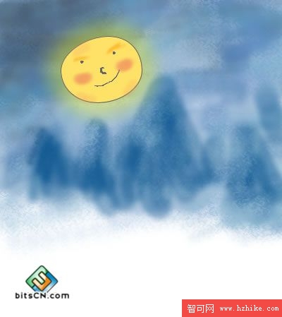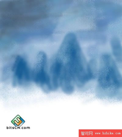 3.使用【毛刷】和【柔化圓形】繪制遠山的輪廓