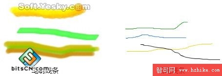 “刷子”  工具和“鉛筆”  工具都可以直接在畫布上畫出任意線條,如圖2—07。