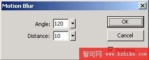在添加Motion Blur(動態模糊)濾鏡,Angle角度為120,Distance距離為10左右。這裡主要是調整下雨時雨的方向和大小。