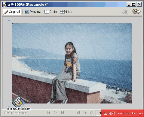 首先,用Fireworks MX 2004打開該圖片,圖片層上新建一個和圖片一樣大小的矩形,fill填充為黑色,stroke為None