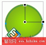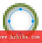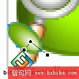 我們再來給它畫一個簡單的小手,好拿住放大鏡。用“橢圓形”工具畫一個20*11的橢圓。采用“橢圓形”漸變填充,色彩的漸變值由#ffffff至# 76ae00,描邊色為# 669309的1像素柔化。然後重新啟動數值變形對話框,將該對像進行40度的旋轉。然後將這個小手移到放大鏡左側位置,如圖13。