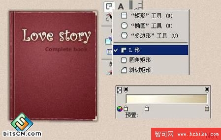 8、制作書角,使用L型工具,放射性漸變。最終完成效果。