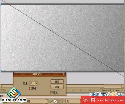 畫一個同文件大小的矩形。屬性為:充填(灰色)充填類別:(線性漸變)。在點效果→雜點→新增雜點。屬性為(數量15)得到效果如下圖: