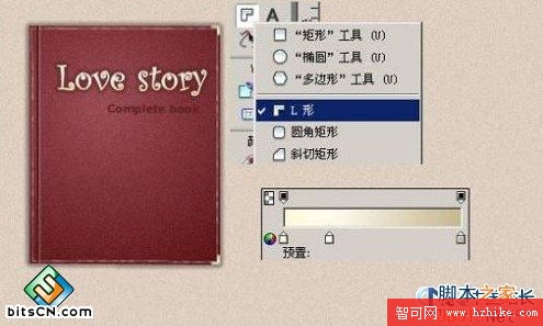 8、制作書角,使用L型工具,放射性漸變。最終完成效果。