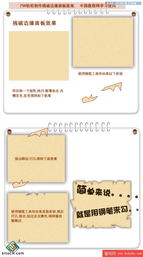 本文我們介紹一種在Fireworks中簡單制作殘破邊緣的方法:用鋼筆來勾邊緣,然後大家可以在這個基礎上任意變化樣式。