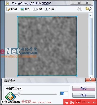 Step 5 -選擇“濾鏡”>“模糊”>“高斯模糊”,參數設置為:模糊范圍 = 3.3,效果如圖3所示。