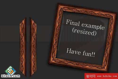好了,你現在已經得到一個很漂亮的木制框架效果了。另外,你可以復制你的圖形並重新調整它,使其變小,改變後用scale工具來變形並在水平方向反轉。