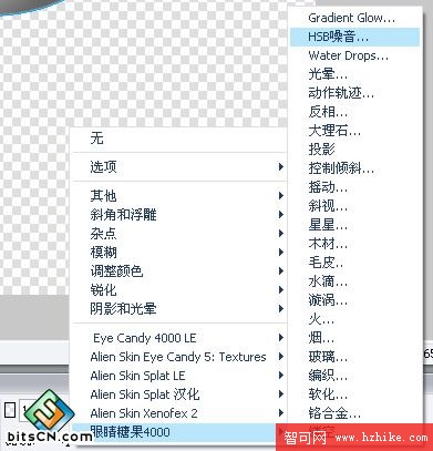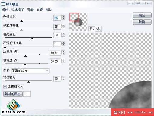 點選畫好的圓形,在屬性面板濾鏡選項裡選擇[眼睛糖果4000(eye canday 4000)]--->HSB噪音屬性如下圖: