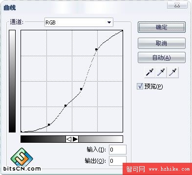 得到的效果只是顏色的效果,在這裡我們為了增加質感在繼續點選濾鏡-->調整顏色-->曲線,屬性如圖: