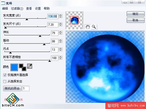 最後在給它加上發光和光暈這2個濾鏡。(友情提示:建議機器配置不好的先把前面得到的效果轉換為位圖在做光暈效果的操作,因為會消耗不少內存^_^)