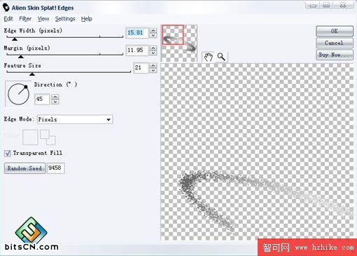 第七步: 選取剛做好的扁形位圖,選擇濾鏡-->Aline skin splat le-->Edges.屬性如圖: