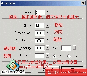 白色滑動條:這裡有兩種制作方法,首先用矩形工具繪制白色的矩形框,不要描邊,調節透明度,這裡就有分歧了,第一種,我們可以定義該矩形框,按F8,選擇Animation,讓他成為一個運動圖符,然後設置他的運動(Modify - Animation - Settings),如圖: