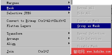 8、同時選中圖案與文字,在菜單中選擇:Modify--Mask--Group as Mask。