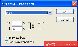 選擇Modify(修改)-Transform(變形)-Numeric Transform(數值變形),輸入20,將圖像縮小20%