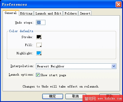 選擇Edit(編輯)-Preferences(參數選擇),將Interpolation(插值法)改為Nearest Neighbor(最近的臨近區域),注意在效果做完以後要把它改回去,不然以後縮放圖像會很難看。