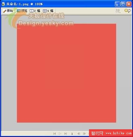 1、首先在Fireworks中新建一個大小為400×400的畫布,在這裡我們將畫布顏色自定義為紅色,如圖1所示。