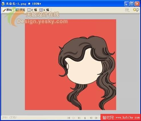 在對頭發的處理上最為復雜,我們可以對一條條直線進行任意變形以及在適當的位置添加較深的顏色從而達到一種立體的高光效果,這在處理其他圖形時也是經常用到的。而在設計好的圖像上添加一點小動畫,就會使原本平凡無奇的畫面瞬間變得生動起來,對於動畫的設計,只要掌握了基本的方法,我們就可以根據自己表達主題的需要而盡情發揮,可以添加兩個甚至更多的幀來實現變幻無窮的視覺效果,這些都需要讀者朋友們在創作的過程中去體會。