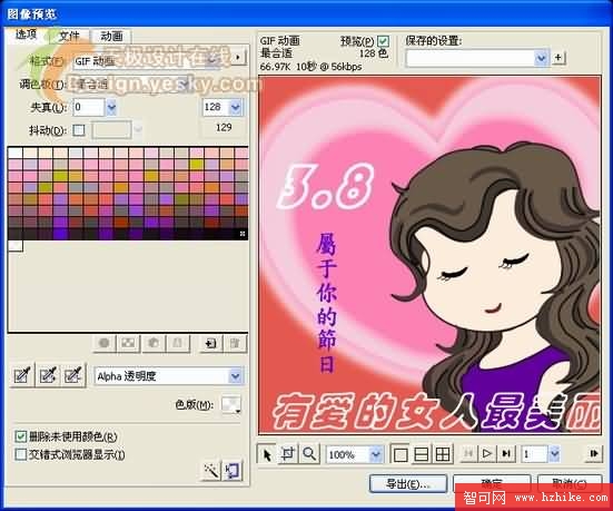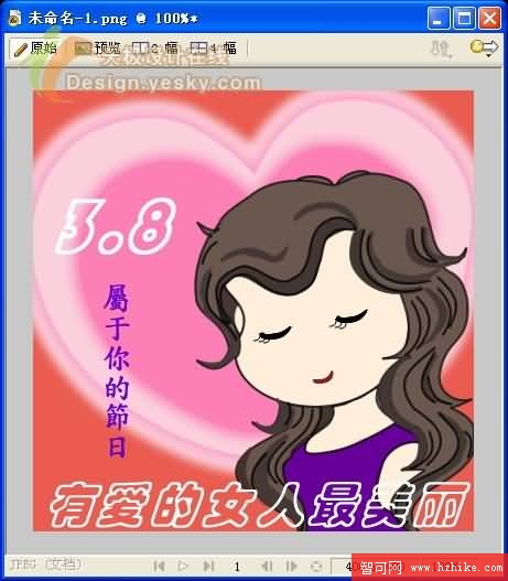 小結:本例中我們用Fireworks設計了一幅以三八婦女節為主題的女性宣傳畫,並適當增加了一些簡單的動畫效果,相信大家一定會對這個美麗溫柔的女性留下深刻的印象的。在繪制過程中,主要用到了直線和橢圓工具,並對這些工具所繪制的路徑進行了各種自由變形,從而得到較好的視覺效果。