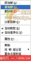 10、單擊【幀】面板右上角處的小黑三角,出現彈出菜單,選擇【重置幀】這個選項,如圖10所示。