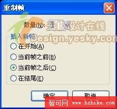 11、選擇以後就會出現一個對話框,要求輸入幀的數量以及確定幀的位置,我們選擇添加1幀,並且插入在當前幀之後,如圖11所示。