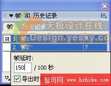 15、對圖像修改完以後,按住Shift鍵將幀面板中的幀1幀2選中,雙擊鼠標,出現幀延時的時間設置,我們將時間設為150/100秒,如圖15所示。