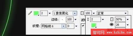 先新建一條綠色的彎曲路徑,選擇發光濾鏡,設置如圖: