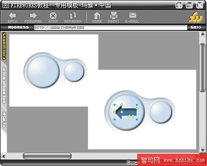 現在不管是Windows Media Player播放器,還是MSN浏覽器,甚至於騰訊的QQ浏覽器都將前進後退的按鈕改成了這種啞鈴形狀,下面我就教給大家如何在Fireworks MX 2004中制作這種簡單的啞鈴按鈕。