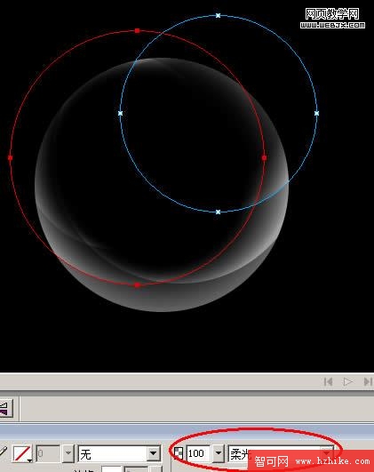 將最初畫的圓復制一份副本,將圖像混合模式改為“顏色減淡”,並將透明度設置為40%。
