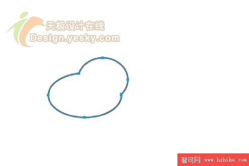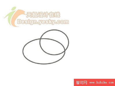3. 選中兩個橢圓,然後選擇【修改】|【組合路徑】|【聯合】將兩個路徑組合起來,得到如圖3所示的圖像。這一步的目的是勾勒出狗狗的臉部輪廓。design.yesky.com©天極軟件頻道設計在線版權所有©2001324542