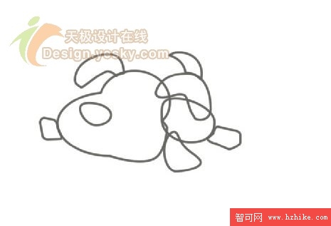 5. 使用類似的方式勾勒出狗狗的其他部位,如圖5所示。這裡需要注意的是我們最好使用工具箱中提供的橢圓工具、矩形工具和鋼筆工具配合使用來得到需要勾勒的大致輪廓,而不是使用鋼筆工具點擊勾勒,因為使用鋼筆工具點擊的效果稜角太多。如果經濟條件允許的話,可以購買一個數位板這樣能夠方便作圖。