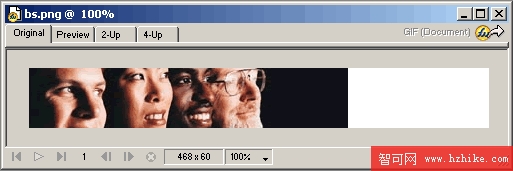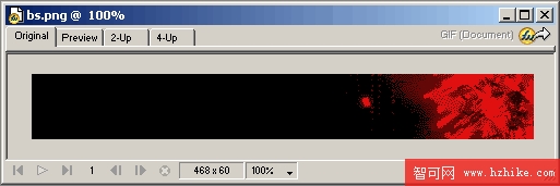 4.這個時候畫布一片空白,好象我們辛苦了半天,都白做了?!不要著急,真正的動畫還沒有開始做呢,看著畫布是不是有點單調啊,我們給她美化一下吧,因為我們的素材背景是黑色的,我們把畫布的背景改為黑色,菜單修改(Modify)->畫布(Canvas)->畫布顏色 (Canvas Colors...),再在角上加個不動的圖片吧,使Banner更加生動,如圖