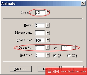 9.現在,大功告成了,點擊播放按鈕浏覽一下吧,是不是速度太快了,沒關系,按住Shift鍵,選中所有的幀,雙擊,將幀速調整為10,現在速度可以了吧! 10.變色是實現了,可沒有文字的Banner是沒有用的。加文字動畫可以根據自己的需要設置,這裡我羅嗦一下例子中的幾個文字動畫效果,大家也可以進一步熟悉動畫制作的一些技巧。