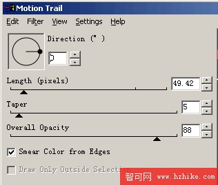 (模擬條形碼,詳細教程見:http://)然後羽化,在PropertIEs面板裡選擇Effects,選擇Motion Trail...濾鏡,進行兩次“動感”一次角度為0,如下圖,一次為180。
