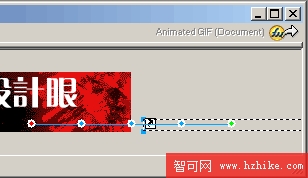 調整動畫控制柄,如下圖,綠色點為動畫起始位置,將它移到圖片外面,紅色點為終止位置,將它移到文字的下放,然後在幀面板中選中第5幀,雙擊後面的數字,將幀速設為200。