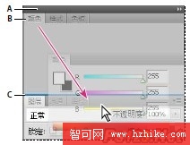 較窄的藍色放置區域表示, “ 顏色” 面板將自行停放在“ 圖層” 面板組上面。