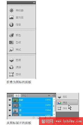 您可以將面板折疊為圖標以避免工作區出現混亂。在某些情況下,在默認工作區中將面板折疊為圖標。