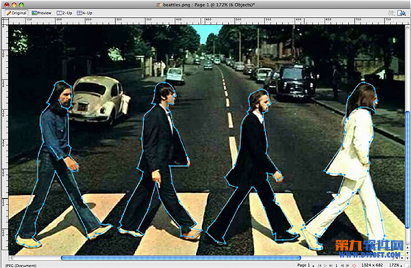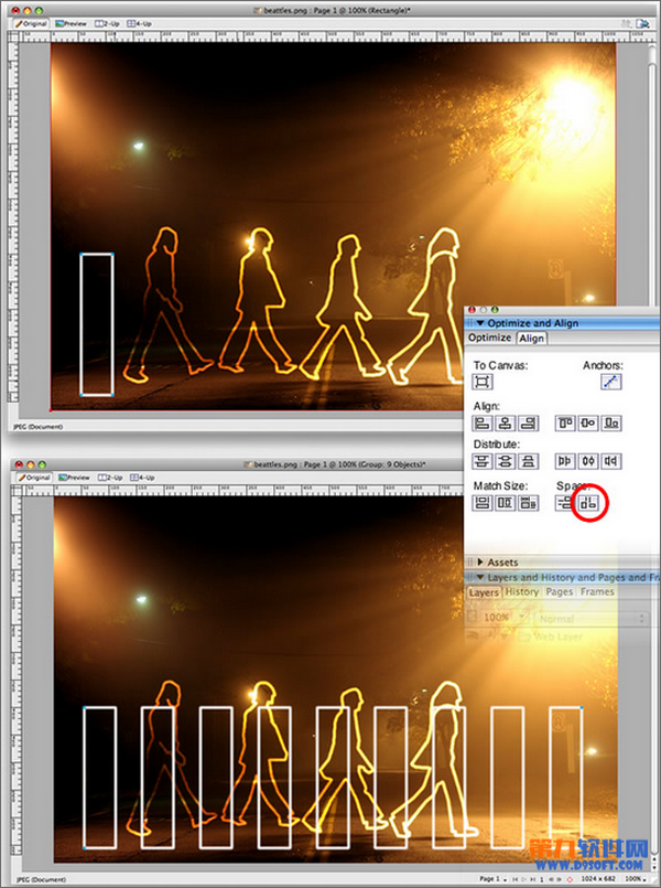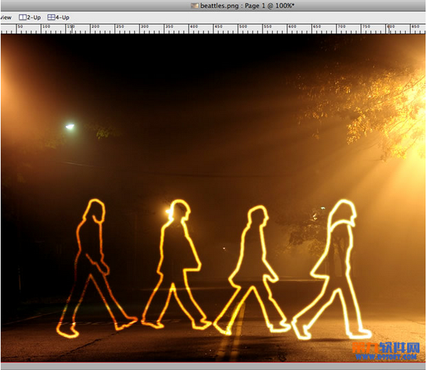 7,復制多次長方形斑馬線,隨後全選,進行變形,然後用之前做人物剪影同樣的方法來制作和背景融合的交通斑馬線效果